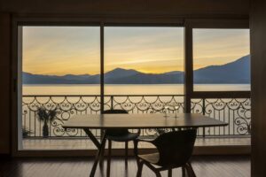 Sie werden eine vertraute und einladende Umgebung vorfinden, mit einem Privatstrand, wo Sie sich sonnen und ein gutes Glas Wein in unserem Bistro genießen können, während Sie einen spektakulären Panoramablick auf den See genießen.