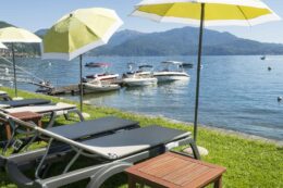 Ein Teil der sandigen Luft am Strand ist ihnen gewidmet, wo Sie Zugang zum See haben, während es nicht möglich ist, die Rasenfläche zu betreten.